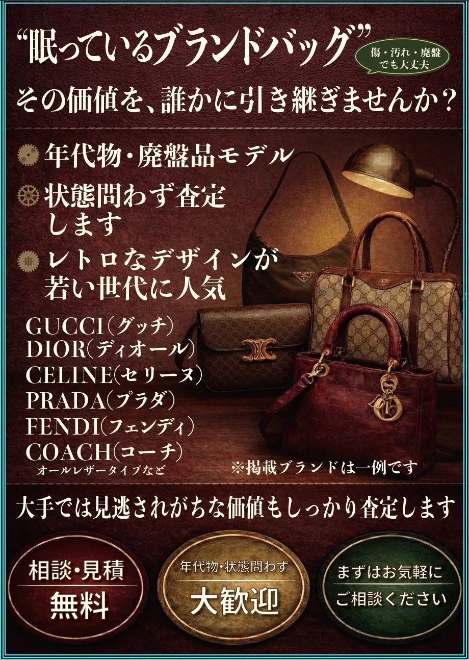 当店では年代物・廃盤品の古いブランドバッグを買取強化中です。